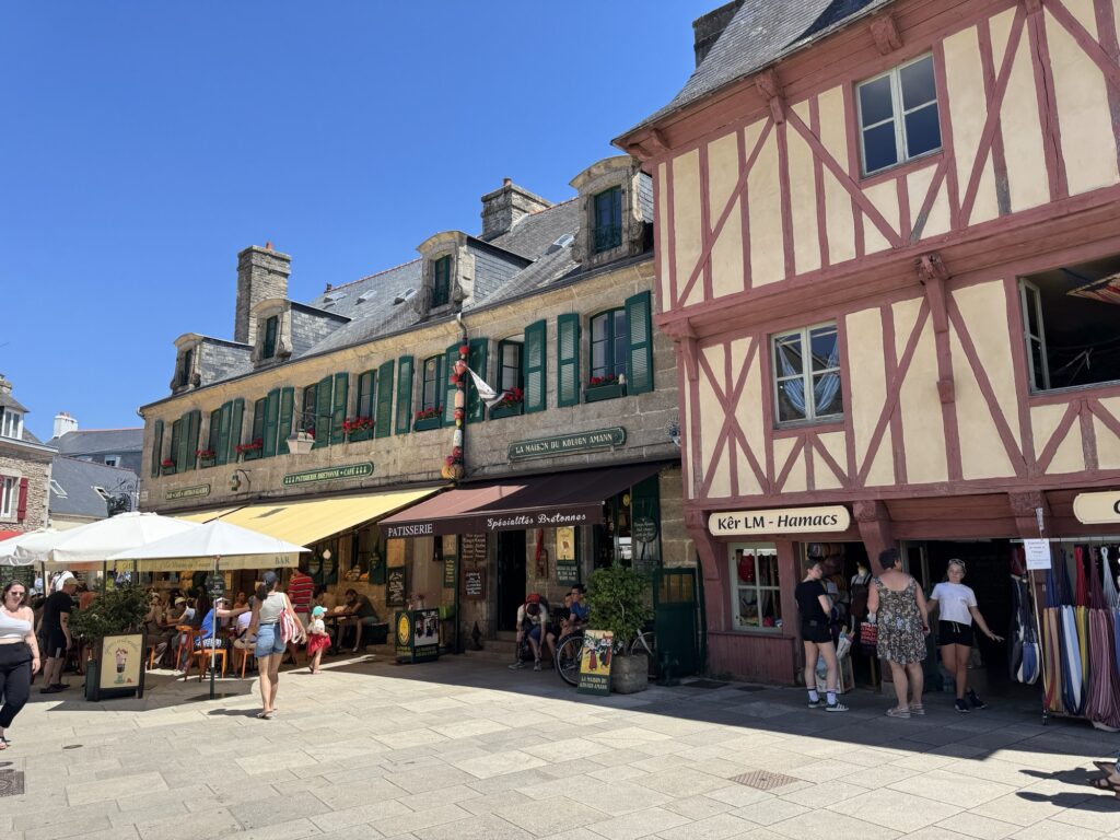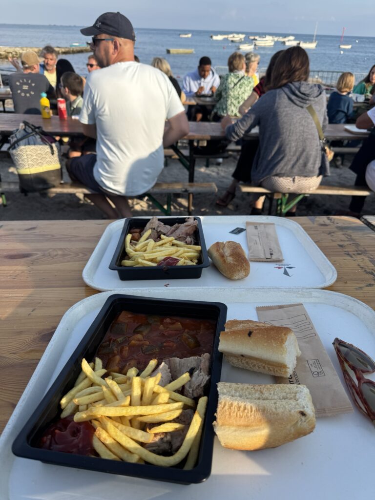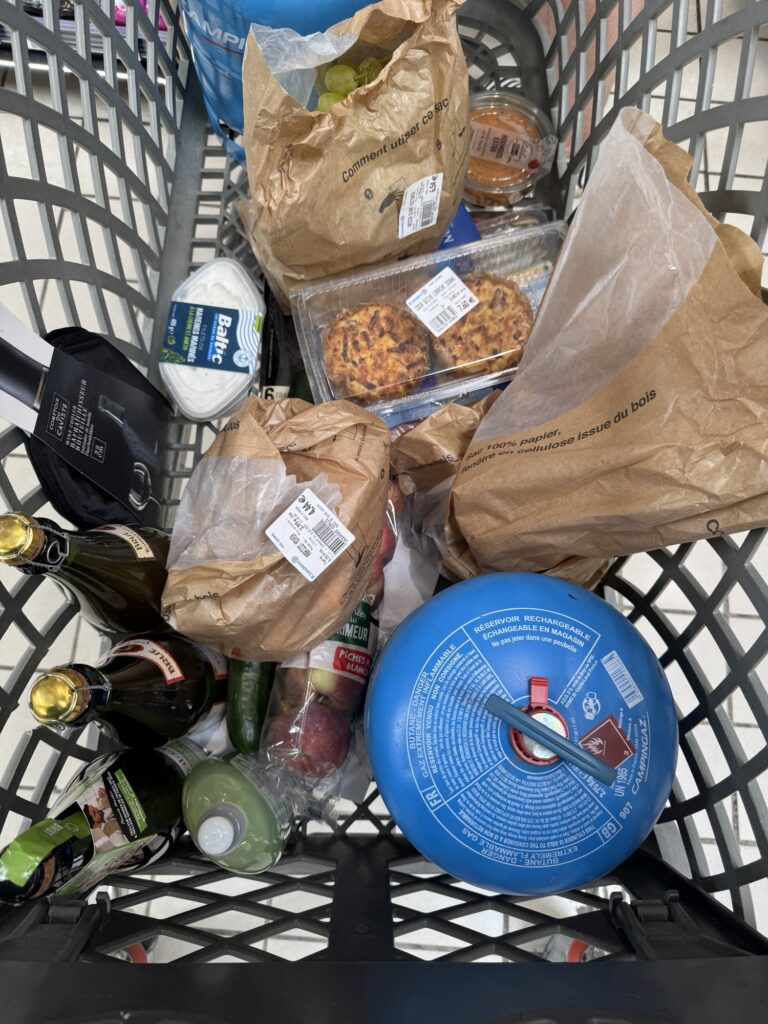 Eigentlich brauchen wir nur Milch und Getränke. Rausgekommen sind wir mit einem Wagerl voller Leckereien aus dem Fisch Regal, der Käse Ecke und und und. Ein französischer Supermarkt halt.