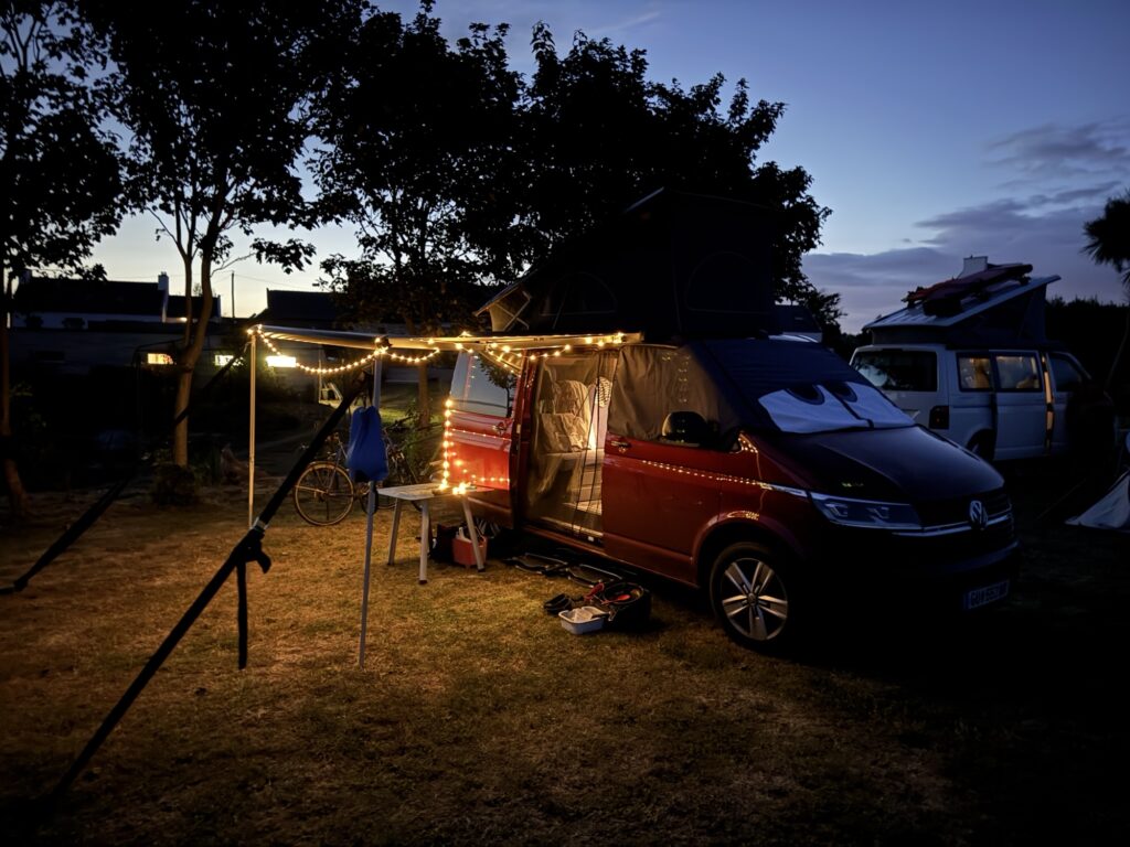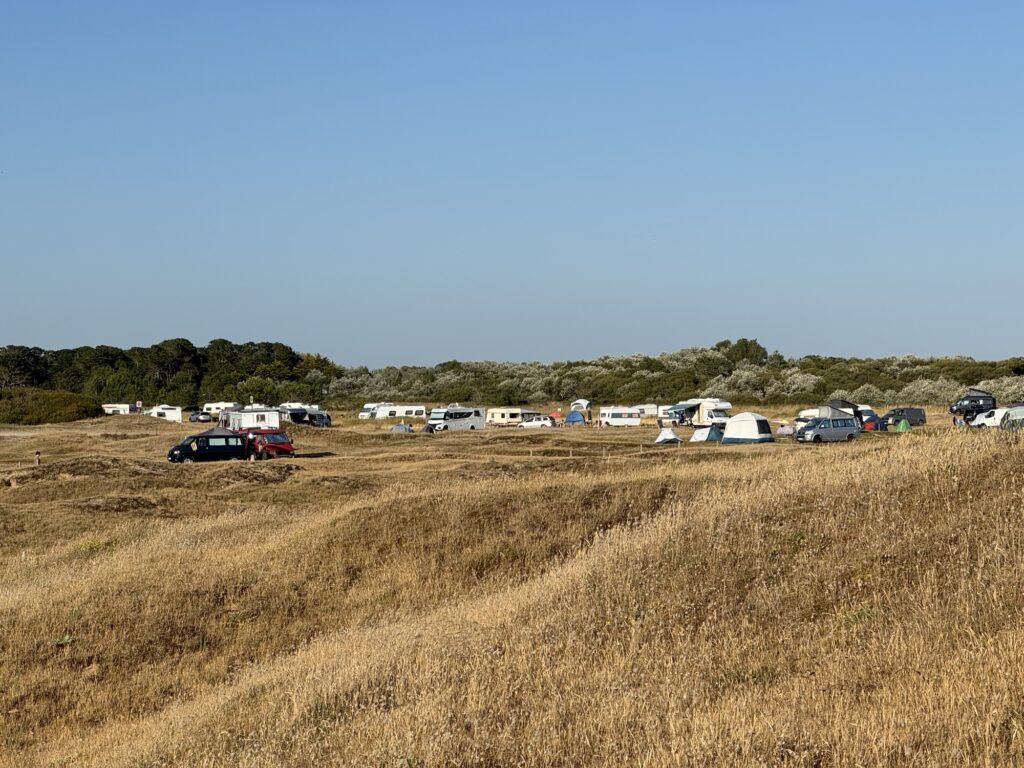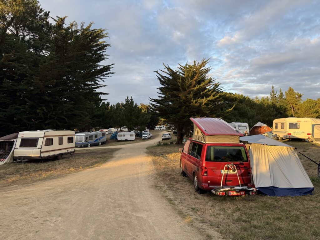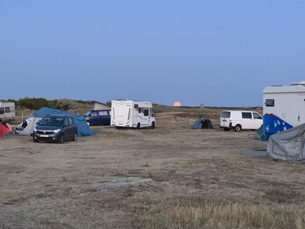 Und mitten in den Bergen. Der Hügel links da über dem roten Auto ist der Pointe Nerot und 3537m hoch. Sein Nachbar hat 3882m… etwas hochalpin. Deswegen sind wir hier auch eher Aliens, wird der Platz sehr von Wanderern und Tourengehern als Basis benutzt
