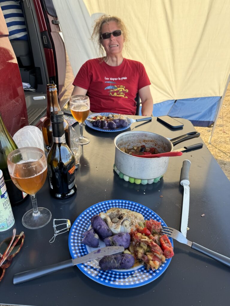 Aber wie das in Gallien so is(s)t, endet auch dieser Abend auf einem Campingplatz in der Nähe des Puy de Dome mit einem Festmahl, Gerhilds Geburtstagsessen