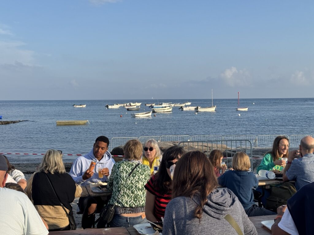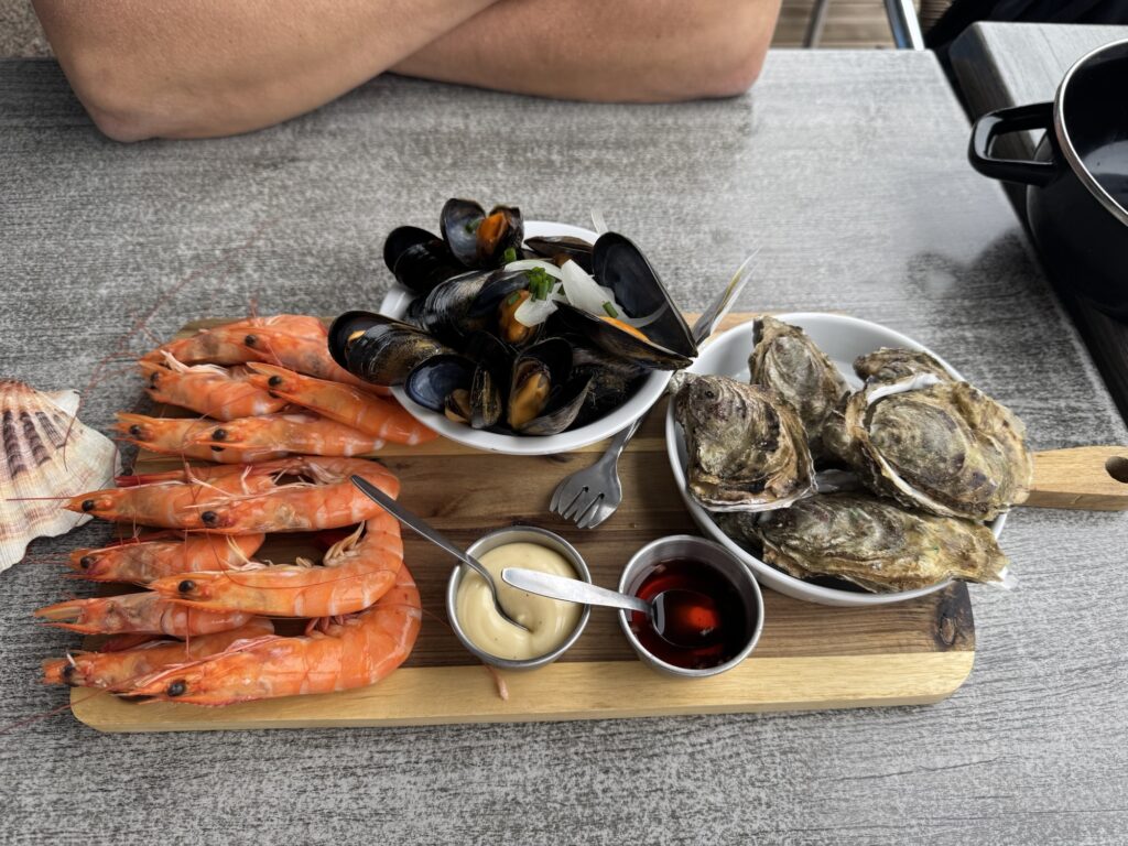 Ist jedenfalls total fein dort, mit Möwengeschrei, Blick aufs Meer, ein bissi Nebel der gerade noch aufsteigt…. Mhmm so lässt sich ein Vormittag gut verbringen.
