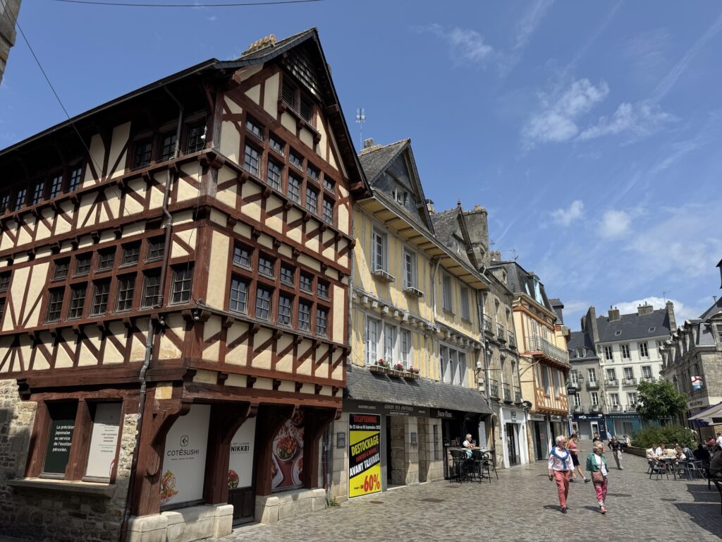 Die Arkaden um all die Plätze sind wunderbar, und wir schlendern vorbei an Geschäften mit prächtigen Holzfassaden und nun auch schon historischen Werbungen