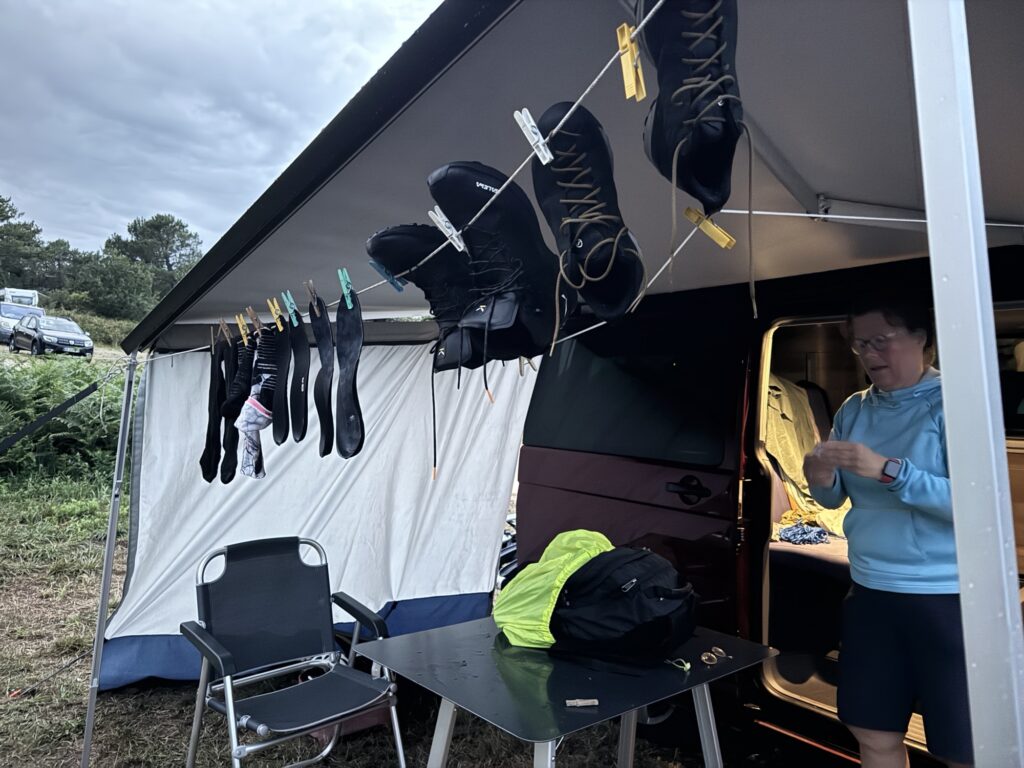 Is ein bissi durchwachsen der Tag und unsere Regenjacken kommen zum Einsatz, denn es fallen dicke Tropfen und das letzte mal vor vielen Jahren haben wir wegen solcher Tropfen in rauen Mengen erkennen müssen, dass sich eine Jean nicht über dem Luftschacht im Auto trocknen lässt….:-)