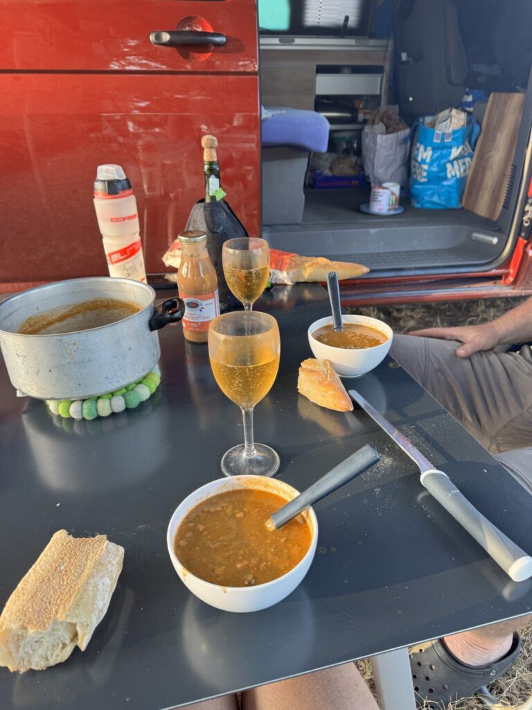 Gleich über dem Pass wartet ein Camping Municipal auf uns wo wir nach langem Tag ankommen, aufbauen und den Kühlschrank leeren, sind wir doch in Frankreich und für den nexten Einkauf muss alles gerüstet sein